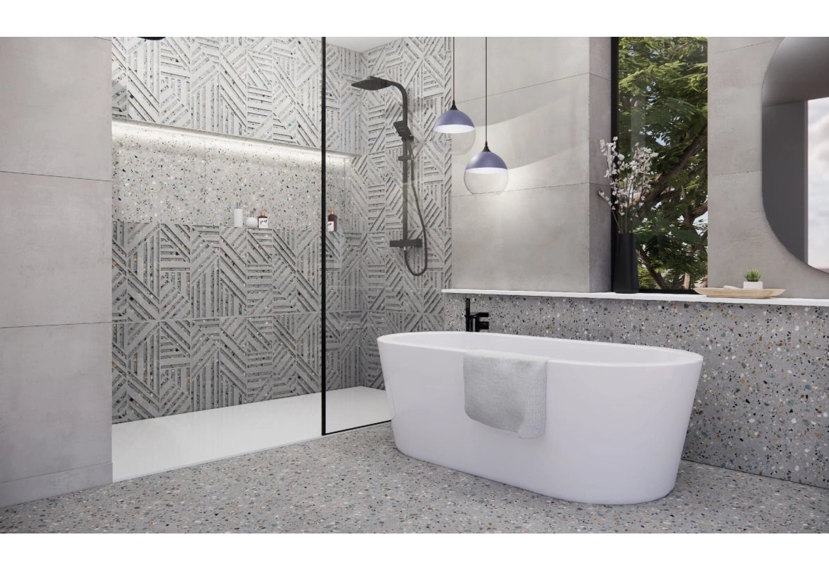 Dlažba imitace betonu, velkoformátová dlažba až 60x120 cm. Do kombinace retro dlažba v dekorech patchwork. Vhodná i jako velkoformátové obklady do koupelny v imitaci betonu.Výrobca: ROCERSA