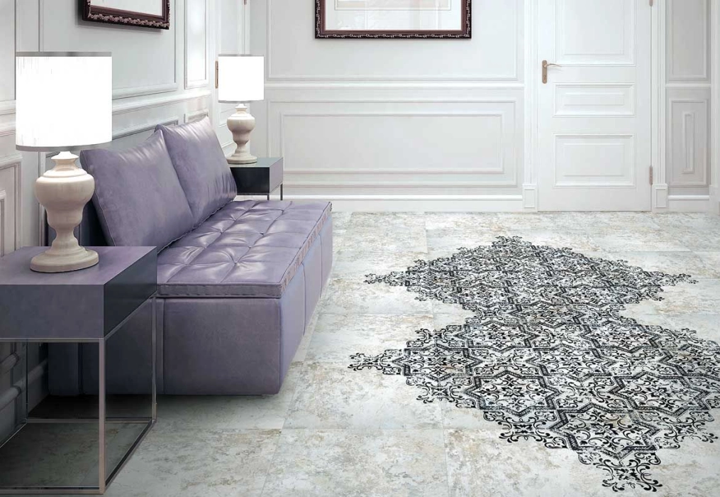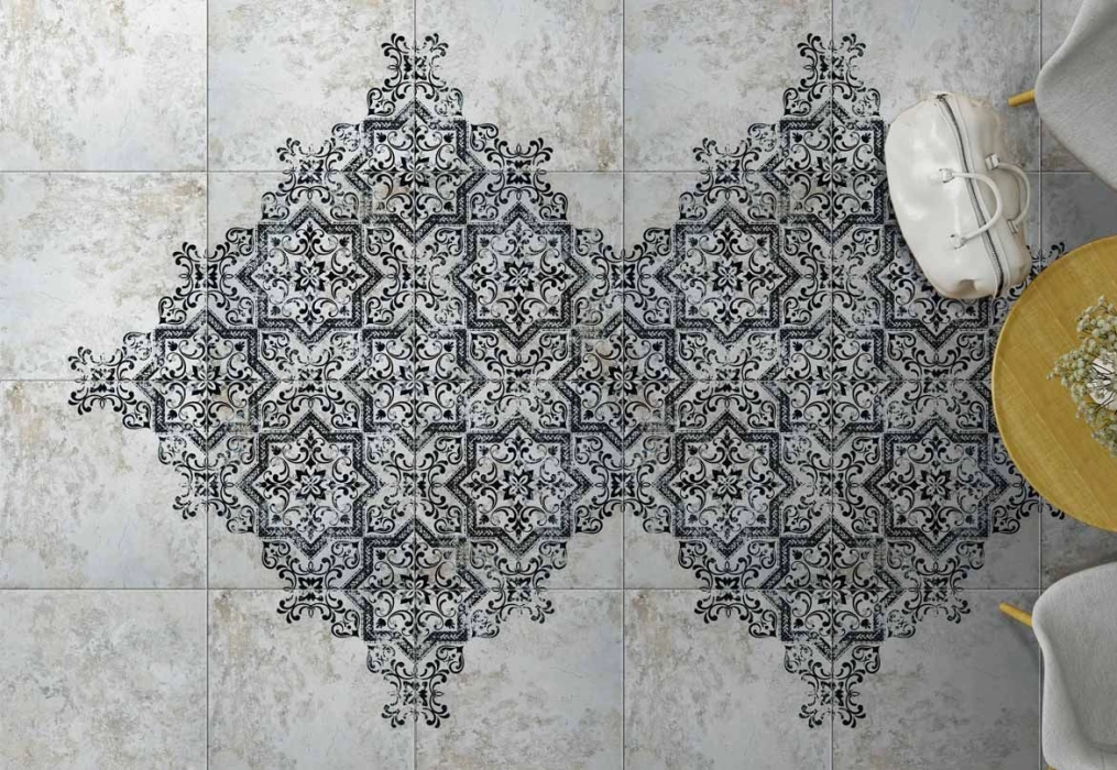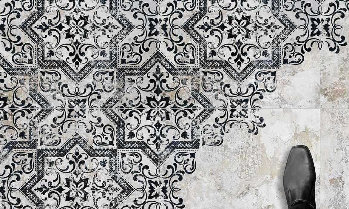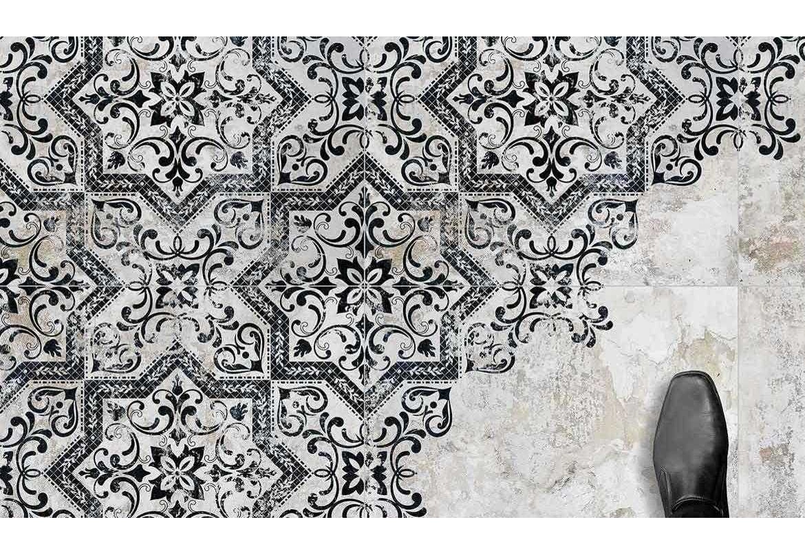 Série Fleur My je dlažba ve stylu retro s klasickým secesním vzorem kombinujícím barvy bílou, černou a šedou. Formát dlaždice je 20 x 20 cm, dlažba má matný povrch a je mrazuvzdorná a její využití je jako dlažba i jako obklad v bytovém interiéru retro stylu.Výrobca: MAYOLICA